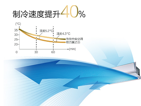 沐浴式制冷,冷氣自然沉降,避免“空調(diào)病”,制冷速度提升40%。 |